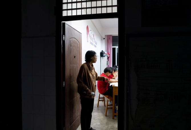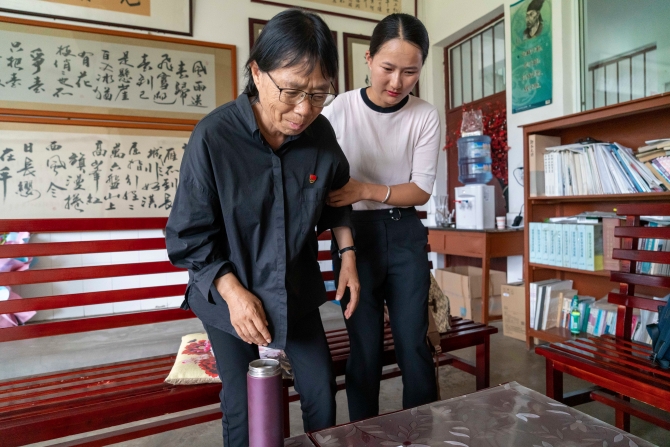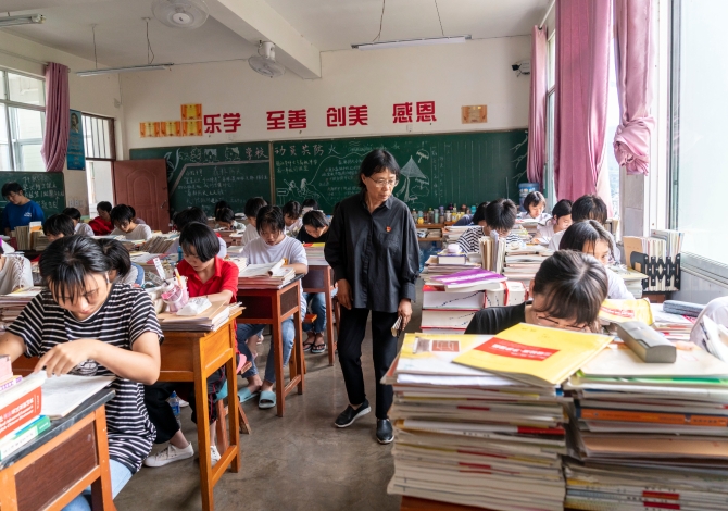 ↑張桂梅在檢查學生上課情況(7月4日攝)。