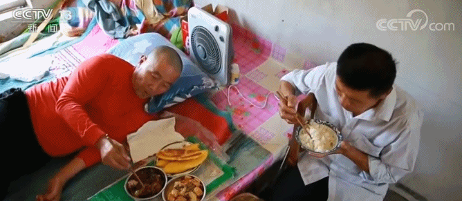 而這份特殊的“牽掛”對于和姚增真同村的的劉寶俊來說就是生的希望。60歲的劉寶俊一個人生活了大半輩子,在去年9月,劉寶俊突發(fā)腦溢血,半身癱瘓,生活無法自理,身邊卻沒有一個人,進入了人生最灰暗的階段。而此前并不相識的姚增真卻在這個時候站了出來,每天三頓飯,幫劉寶俊收拾衛(wèi)生、翻身,帶著他做康復鍛煉。