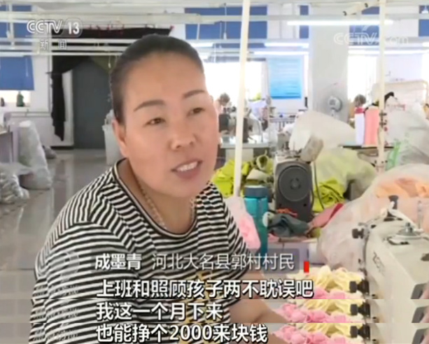 對于企業(yè),最大的好處是房租大幅降低;對于村民,最大的好處莫過于在家門口就能打工掙錢了。成墨青是大名縣郭村的貧困戶,因為丈夫去世,婆婆癱瘓,所以她獨自撫養(yǎng)著兩個孩子,沒法外出打工,現(xiàn)在她在家門口的微工廠找了份工作。