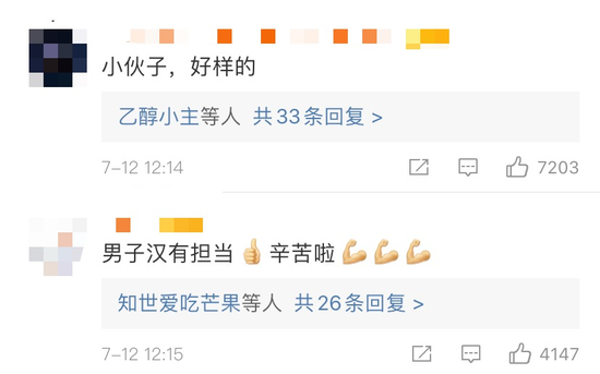 “男子漢有擔(dān)當(dāng),辛苦啦!”