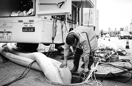 昆明排水公司在大商匯抽排積水 記者 龍宇丹 攝