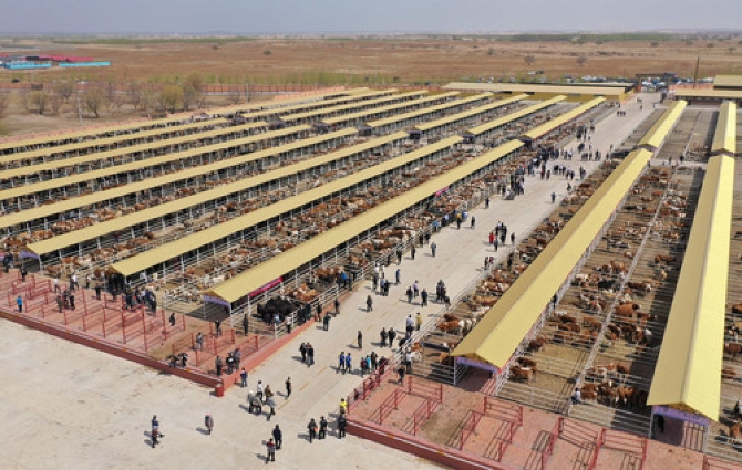科右中旗肉牛交易市場(chǎng)(5月1日攝,無(wú)人機(jī)照片)。新華社發(fā)(梁永峰 攝)