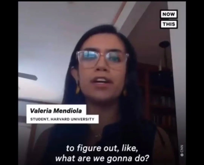哈佛大學(xué)的墨西哥留學(xué)生瓦拉利亞:我來自肯尼迪學(xué)院,班上85%的同學(xué)是國際學(xué)生。這個消息一發(fā)布,我所有的同學(xué)都在互相發(fā)信息,大家都在想,我們到底要怎么辦?