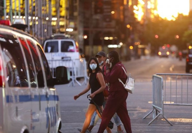 圖說:6月27日,人們在美國紐約時報(bào)廣場觀光。 新華社記者 王迎 攝