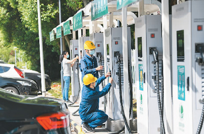 近年來,寶馬、奔馳和大眾等外資車企紛紛與國內(nèi)企業(yè)加強合作,在華布局充電樁。圖為日前在浙江寧波,工作人員為公共充電站進行維護。新華社記者 徐 昱攝 |