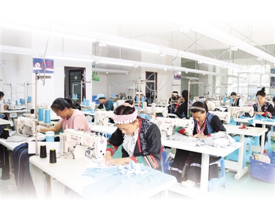 金滿村搬遷戶在巴尼小鎮(zhèn)的扶貧車間里上班。