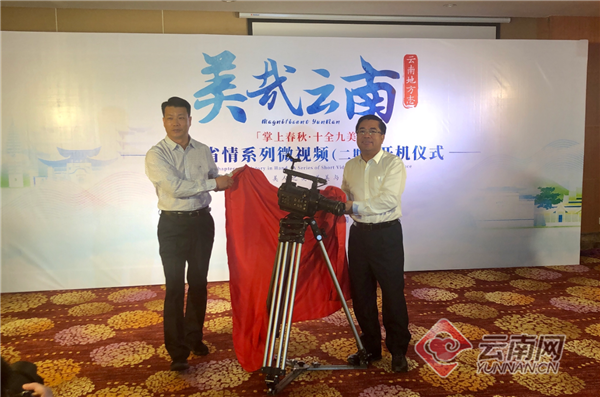 活動現(xiàn)場,楊建林主任宣布云南省情資源開發(fā)利用項目·《美麗云南》省情系列微視頻(第二季)開機,并與王志新秘書長一同為項目開機揭幕。