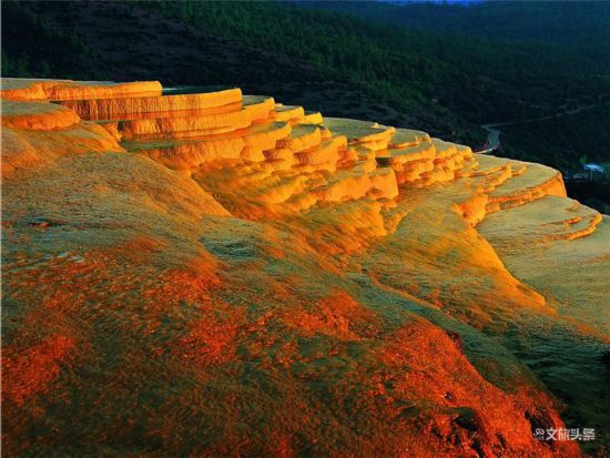 白水臺(tái)是由于碳酸鈣溶解于泉水中而形成的自然奇觀,碳酸鹽逐漸沉淀形成臺(tái)幔,好似層層梯田,被稱為“仙人遺田”。納西語稱白水臺(tái)為“釋卜芝”,意為逐漸長大的花白水臺(tái)不僅是一個(gè)風(fēng)景秀麗的地方,又是納西族東巴教的發(fā)源地中心,宗教活動(dòng)和民族節(jié)目的活動(dòng)之處。