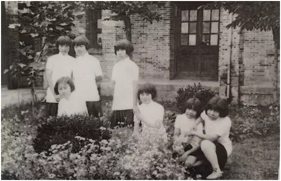 溫州師范學(xué)校部分女學(xué)生在鄭樓教學(xué)樓門前合影(右一為林心平,1935年)