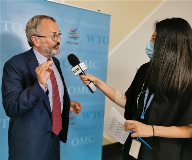 △7月15日,世界貿(mào)易組織發(fā)言人基思·羅克韋爾接受總臺記者專訪