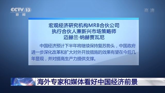 宏觀經(jīng)濟(jì)研究機(jī)構(gòu)MRB合伙公司執(zhí)行合伙人兼新興市場(chǎng)策略師邁赫蘭·納赫賈瓦尼表示,中國經(jīng)濟(jì)預(yù)計(jì)下半年將繼續(xù)保持復(fù)蘇勢(shì)頭,中國政府進(jìn)一步深化改革和擴(kuò)大對(duì)外開放措施的效果有望在今后幾年顯現(xiàn),并對(duì)提高生產(chǎn)力提供支撐。