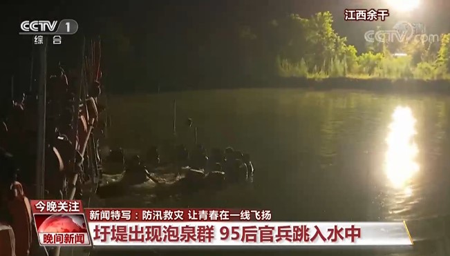 7月16日晚10點(diǎn),江西余干的信瑞聯(lián)圩東塘段堤腳的水塘里發(fā)現(xiàn)3處泡泉。73集團(tuán)軍某旅25人黨員突擊隊(duì)跳入齊肩的水塘中搶險(xiǎn),即使嗆了好幾口渾濁的池塘水,也沒有停下,這25人全部都是95后的年輕人。