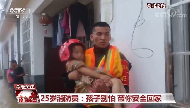 有奮勇的搶險(xiǎn),還有溫情的故事。17日在湖北恩施發(fā)生了這樣感人的一幕,95后消防員張士倫在搜救中發(fā)現(xiàn)一名5歲小女孩神情恐慌,將自己的頭盔摘下來為小女孩戴上,并與她聊天安撫她的情緒,將其抱到安全地帶。