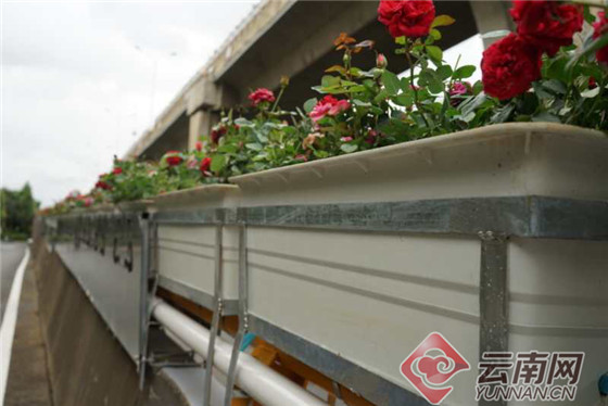 據(jù)了解,掛花美化的區(qū)域涉及二環(huán)高架16座立交的橋梁及上下匝道兩側。為了保證掛花效果,距離較近的立交之間或?qū)崿F(xiàn)連續(xù)掛設。二環(huán)整體掛花的長度將達到128公里,面積約3.8萬平方米。通過連續(xù)掛設一體式花箱,在花箱內(nèi)種植大月季花,實現(xiàn)將二環(huán)打造成為昆明的“城市花環(huán)”。