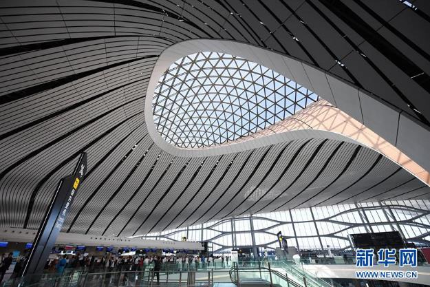 △資料圖,北京大興國(guó)際機(jī)場(chǎng)航站樓內(nèi)部。(新華社記者 張晨霖 攝)