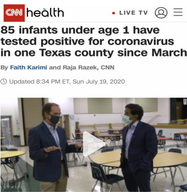 △CNN報道稱,得克薩斯州努埃塞斯縣85名嬰兒感染新冠病毒