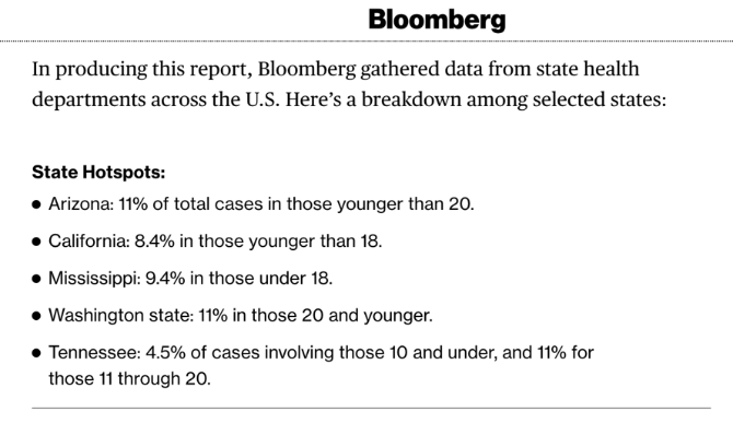 美國疫情反彈之前,新冠病毒的易感染群體為老年人和抵抗力較弱的群體。但隨著各州重啟以及病毒的新一輪擴散,新感染群體不再僅限于中老年,年輕人甚至兒童中也出現(xiàn)了更多的確診病例。