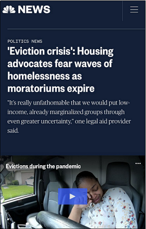 △美國全國廣播公司稱,隨著暫停驅(qū)逐令到期,美國將出現(xiàn)無家可歸潮