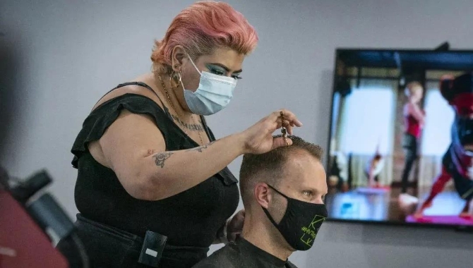 美國(guó)華盛頓特區(qū)于6月22日進(jìn)入第二階段經(jīng)濟(jì)重啟,美發(fā)店等人員密集場(chǎng)所開門營(yíng)業(yè)。
