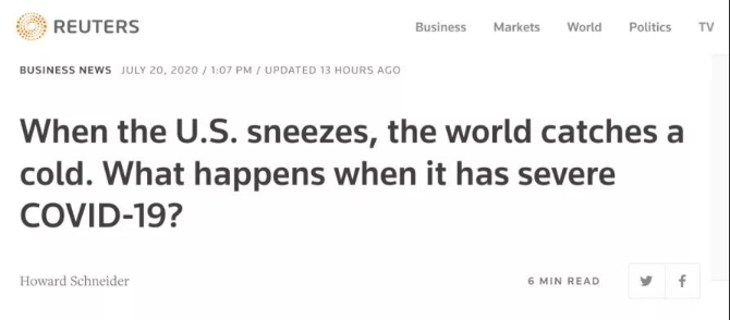 路透社最新發(fā)表的文章進(jìn)一步指出,美國(guó)進(jìn)口額的下滑和對(duì)外商業(yè)投資的減少對(duì)很多國(guó)家經(jīng)濟(jì)產(chǎn)生了深刻影響,白宮現(xiàn)在的政策正在拖垮整個(gè)世界?!懊绹?guó)對(duì)新冠肺炎疫情的糟糕應(yīng)對(duì),已經(jīng)成為全球經(jīng)濟(jì)復(fù)蘇的主要風(fēng)險(xiǎn)”。