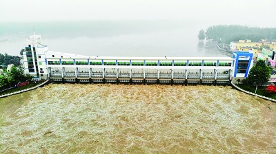 7月20日,淮河王家壩開閘,滾滾淮河水涌入蒙洼蓄洪區(qū)。新華社記者 黃博涵攝