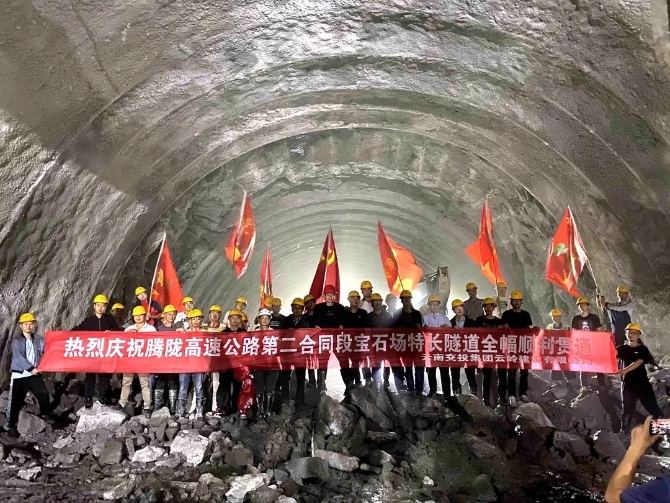 寶石場隧道位于騰沖至隴川高速公路翁冷支線K0+150~K5+015處,左幅4965米、右幅4865米,最大埋深約為410米。工程左幅于2020年5月19日貫通,右幅于2020年7月9日貫通。