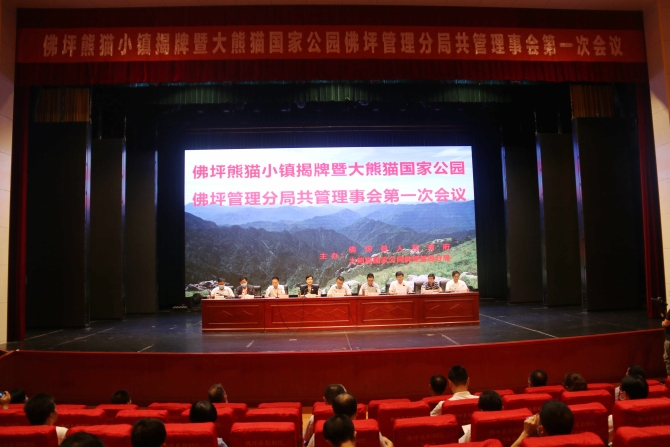 陜西省林業(yè)局副局長薛恩東、漢中市委常委柳林、佛坪縣委書記李芳、佛坪國家級自然保護(hù)區(qū)管理局局長丁海華為熊貓小鎮(zhèn)揭牌,佛坪縣長馮永清主持揭牌儀式。在大熊貓國家公園佛坪管理分局共管理事會第一次會議上,與會人員觀看了《中華圣山.祖脈秦嶺》宣傳片,馮永清與丁海華簽訂了《秦嶺生態(tài)環(huán)境保護(hù)合作協(xié)議》。