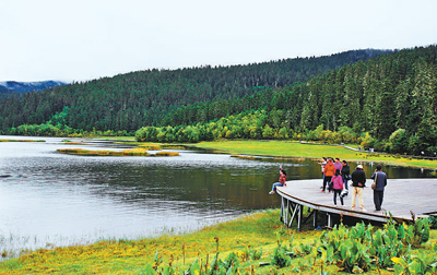 游客在普達(dá)措國家公園內(nèi)游覽。新華社 記者張譽東/攝