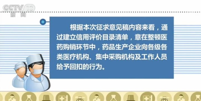 根據(jù)本次征求意見稿內(nèi)容來看,通過建立信用評(píng)價(jià)目錄清單,意在整頓醫(yī)藥購銷環(huán)節(jié)中,藥品生產(chǎn)企業(yè)向各級(jí)各類醫(yī)療機(jī)構(gòu)、集中采購機(jī)構(gòu)及工作人員給予回扣的行為。