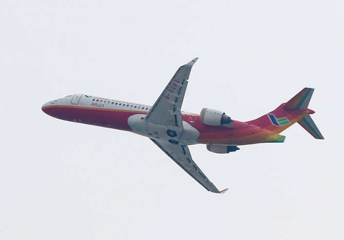 在山東東營(yíng)勝利機(jī)場(chǎng),我國(guó)自主研發(fā)的北斗衛(wèi)星導(dǎo)航系統(tǒng)首次在中國(guó)完全自主設(shè)計(jì)并制造的支線客機(jī)——ARJ21-700飛機(jī)103架機(jī)上進(jìn)行測(cè)試試飛(2017年10月14日攝)。新華社記者 丁汀 攝