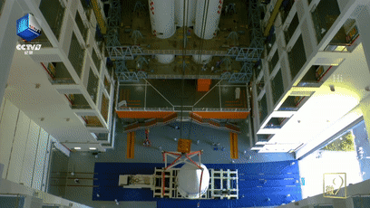 約5噸重的載荷進(jìn)入火箭總裝測試廠房,開始起吊。起吊的過程十分緩慢,60多米的高度,花了足足半個多小時。