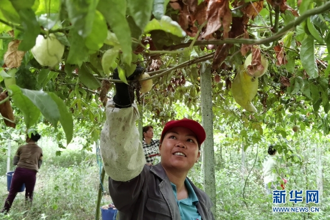 在洞浪百香果基地務工的村民正在采摘百香果。新華網(wǎng) 劉君/攝