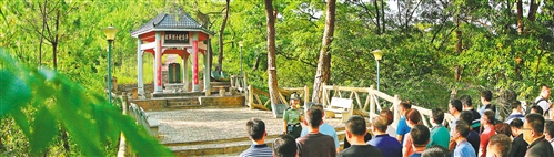 江西省贛州市瑞金葉坪鄉(xiāng)黃沙村華屋紅軍烈士紀(jì)念亭前,講解員為游客講述革命先烈的故事。依托豐富的紅色文化資源和綠色生態(tài)資源,華屋著力發(fā)展紅色旅游和鄉(xiāng)村旅游,組建了華屋鄉(xiāng)村旅游合作社,吸引農(nóng)戶入社。
