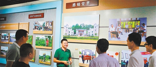 葉坪鄉(xiāng)黃沙村史館,村黨支部書記黃日生在向游客介紹華屋的巨大變化。村史館記錄著該村的歷史變遷,讓村民撫今追昔,感銘黨恩。