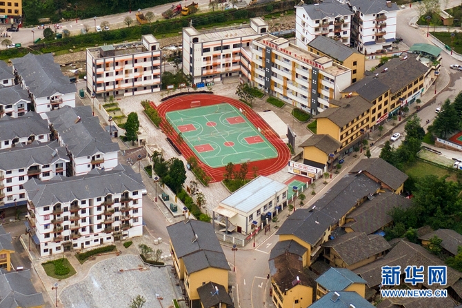 航拍中益小學的環(huán)形塑膠運動場。新華網(wǎng) 朱清 攝