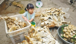 近日云南玉溪市華寧縣寧州街道沖麥村的村民拾到了一窩156公斤重的巨型野生菌