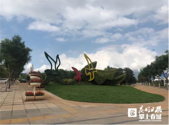 “在道路綠化帶空間充裕位置我們打造了數(shù)個立體花雕景觀節(jié)點,比如說,南繞城上端的‘世界花球’、會展北路與飛虎大道交叉口的‘飄帶海鷗’、會展東路與昌宏西路的‘彩虹丹頂鶴’均以云南元素為立意,以不同顏色與品種的鮮花進行拼接搭配,結(jié)合立體骨架打造出的具有視覺沖擊力的鮮花雕塑?!?/p>