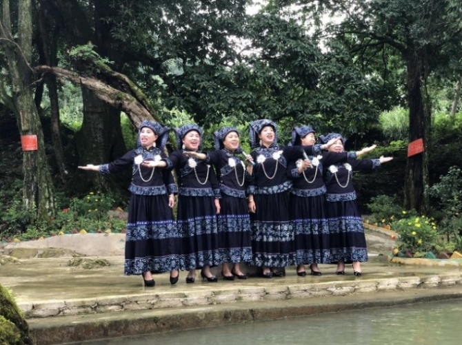 龍里縣“美婆姨山歌隊(duì)”用山歌宣傳“移風(fēng)易俗”新思想 。周瑾 攝