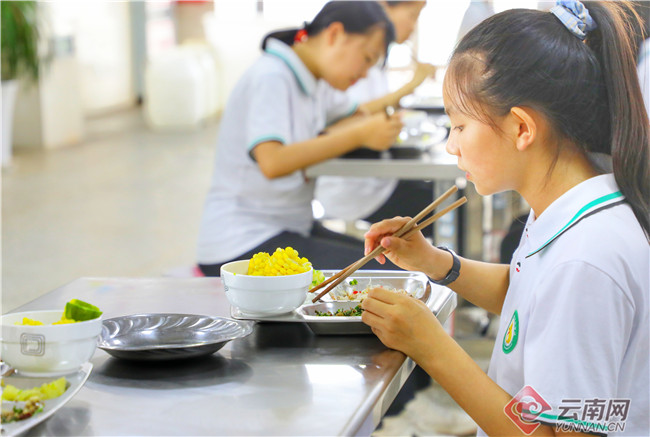 由于嚴格管理,食品安全檢測點為食品安全上“鎖”?!霸趯W校里能吃到這樣的新鮮蔬菜,我們非常滿足?!闭谟貌偷某跻荒昙墝W生彭熙燁高興地說道。