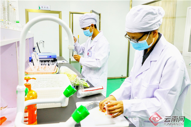 走進連萬家實業(yè)有限責任公司食品安全檢測點,公司工作人員正在對即將采購的蔬菜用食品安全檢測系統(tǒng)進行農(nóng)藥殘留、甲醛檢測,并進行留樣保存。