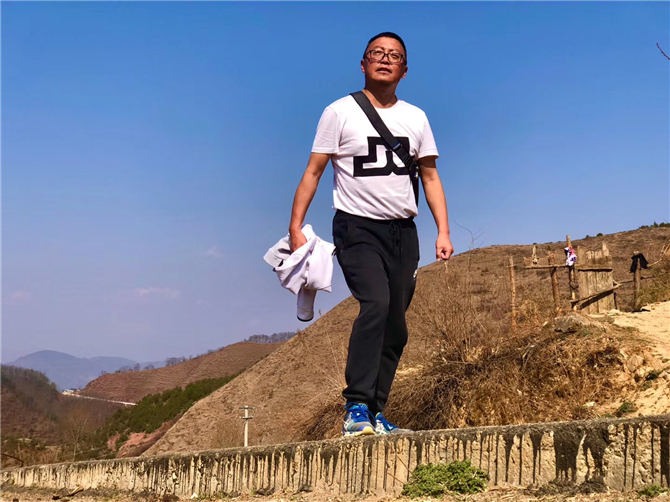 簡單吃點速食粥,穿上跑鞋,他便開始了“走山”——跟著村里的路走一圈,是他每天的“固定節(jié)目”,風(fēng)雨無阻。從合姑洛鄉(xiāng)政府出發(fā),一路走到山頂馬紅村,沿途6公里,不僅能晨練,還能順便走訪一下貧困戶。