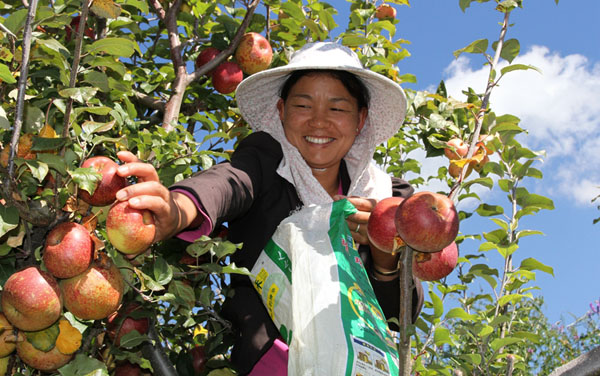 漾濞李家莊,一村民正在采摘蘋果。