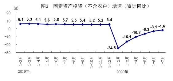 1-7月份,全國(guó)固定資產(chǎn)投資(不含農(nóng)戶)329214億元,同比下降1.6%,降幅比1-6月份收窄1.5個(gè)百分點(diǎn);7月份環(huán)比增長(zhǎng)4.85%。