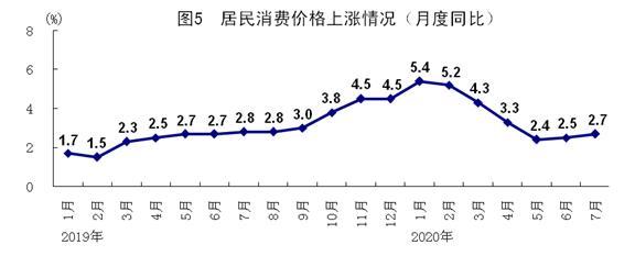 7月份,全國(guó)居民消費(fèi)價(jià)格同比上漲2.7%,漲幅比6月份擴(kuò)大0.2個(gè)百分點(diǎn);環(huán)比上漲0.6%。1-7月份,全國(guó)居民消費(fèi)價(jià)格同比上漲3.7%,漲幅比1-6月份回落0.1個(gè)百分點(diǎn),總體保持平穩(wěn)。