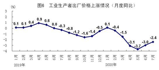 7月份,全國(guó)工業(yè)生產(chǎn)者出廠價(jià)格同比下降2.4%,降幅比6月份收窄0.6個(gè)百分點(diǎn);環(huán)比上漲0.4%。工業(yè)生產(chǎn)者購(gòu)進(jìn)價(jià)格同比下降3.3%,降幅比6月份收窄1.1個(gè)百分點(diǎn);環(huán)比上漲0.9%。1-7月份,全國(guó)工業(yè)生產(chǎn)者出廠價(jià)格和工業(yè)生產(chǎn)者購(gòu)進(jìn)價(jià)格同比分別下降2.0%、2.7%。