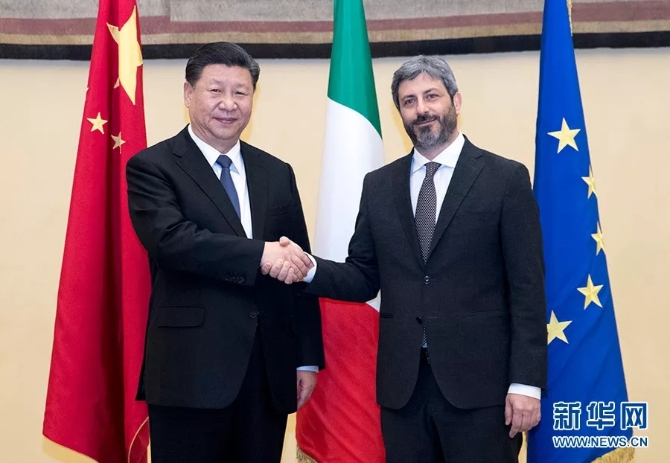 2019年3月22日,國家主席習近平在羅馬會見意大利眾議長菲科。 新華社記者 王曄/攝