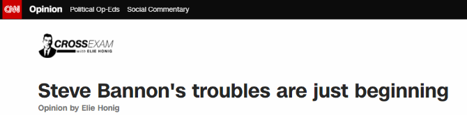CNN評(píng)論稱,班農(nóng)麻煩剛剛開始。對(duì)班農(nóng)來說,為一個(gè)非黑即白的財(cái)務(wù)案件進(jìn)行辯護(hù),難度比為涉及主觀意圖的案件辯護(hù)要大得多。再優(yōu)秀的律師也沒法為假發(fā)票和假收據(jù)洗白。