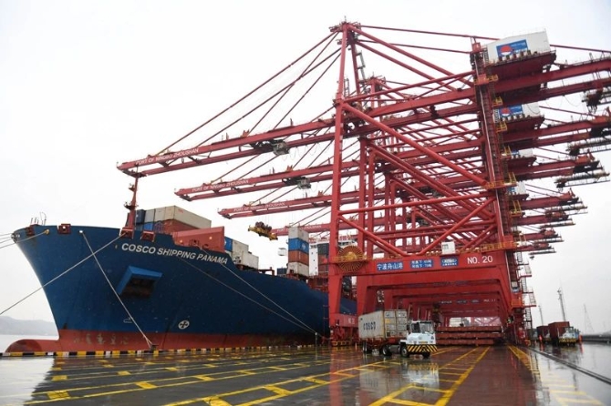 △貨輪??吭趯幉ㄖ凵礁勖飞綅u國際集裝箱碼頭