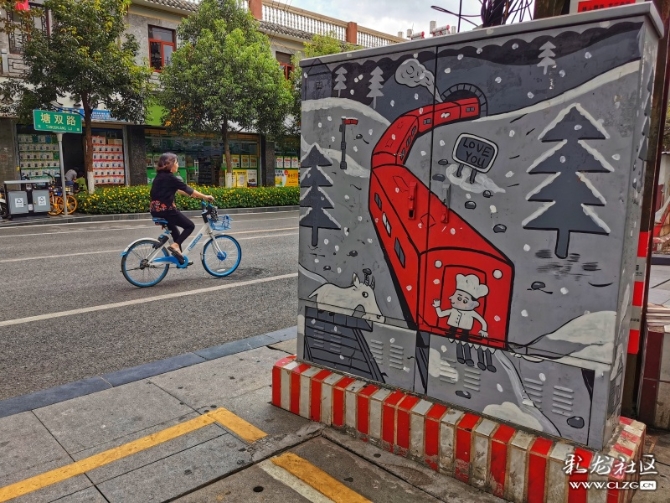 原本突兀地立在街邊的配電箱,現(xiàn)在被繪上美麗的圖畫,成了一道靚麗的風(fēng)景線……
