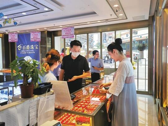“我們店22日就開始做活動,日均成交量達(dá)60到70單,跟平常相比漲了300%,銷量最好的是黃金、K金和彩金產(chǎn)品?!卑倬糁閷?南亞店)崔經(jīng)理告訴記者。